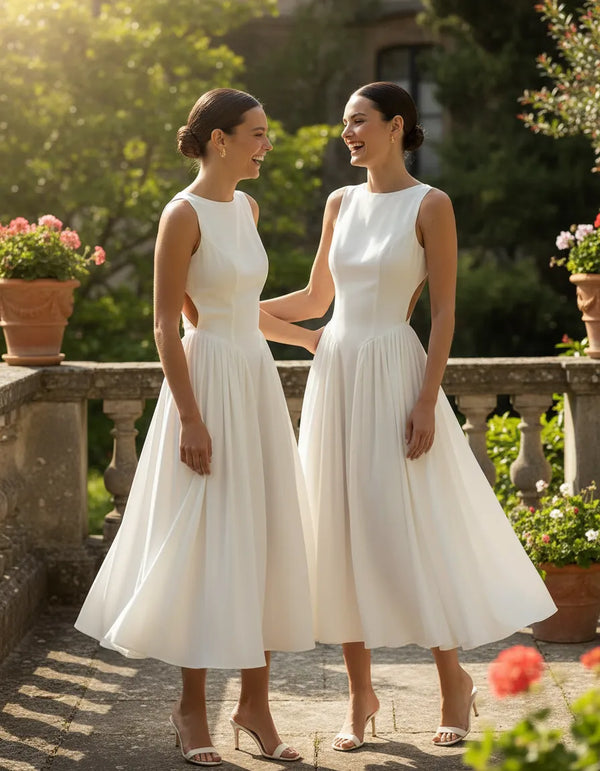 Sculpted silhouette with an open-back design that elevates timeless femininity.